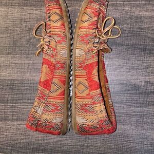 Minnetonka Shoes Minnetonka Baja Aztec Tapestry Womens Red Moccasin Leather Lace