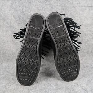 Minnetonka Shoes Womens 7.5 Bootie Moccasin Leather Hi Top Back Zip Fringe Black