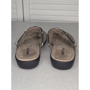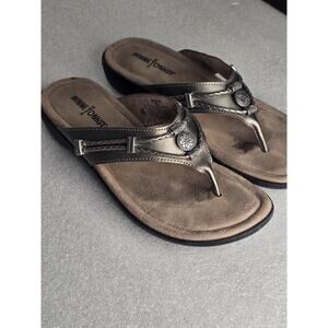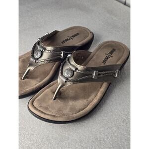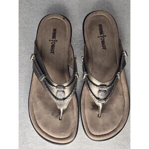 Minnetonka Silverbay Pewter Leather Sandals Size 9 SilverTone Beads Braided