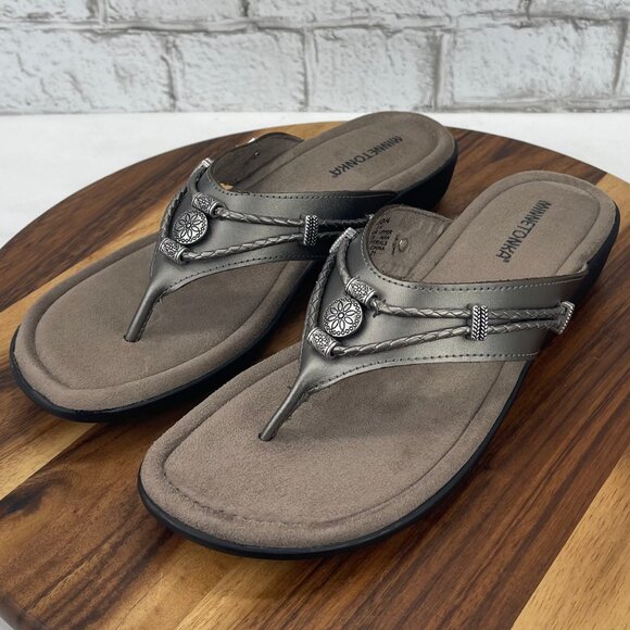 Minnetonka Silverthorne 5909041 Womens 11 M Gray Pewter Comfort Thong Sandals