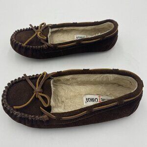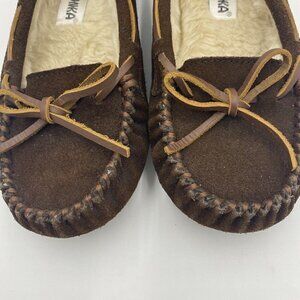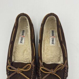 Minnetonka Slipper Moccasins Womens 7 Brown Cally Bow Suede Faux Fur Casual 4049.