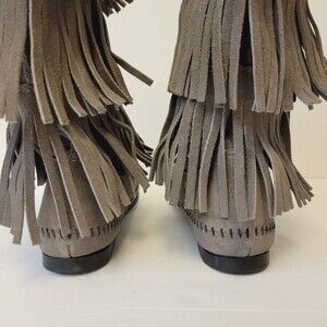 Minnetonka Suede Calf Hi 3-Layer Fringe Moccasin Pocahontas Cowgirl Western Boot