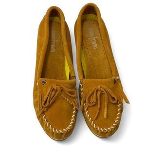 Minnetonka Suede Moc Boat Shoes - Kilty Plus, Saffron Gold, Size 11