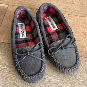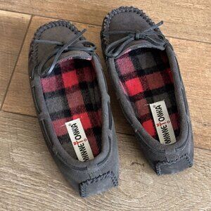 Minnetonka Suede Moccasins, Plaid Lining, Sz 6