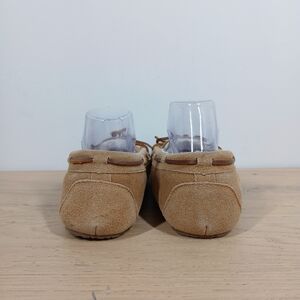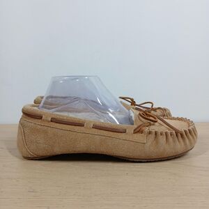 Minnetonka Tan Leather Faux Fur Lined Moccasin Slippers 952