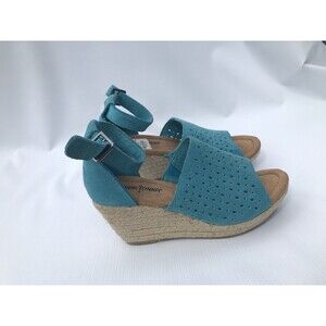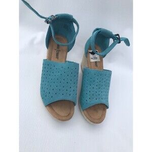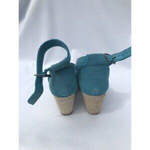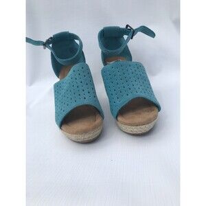 Minnetonka Teal Suede Wedge Sandals Size 9 Ankle Strap Peep Toe