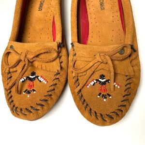 Minnetonka Thunderbird Animikii Suede Beaded Hardsole Moccasin Size 9.5 Women’s