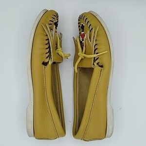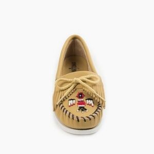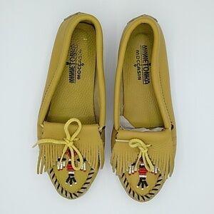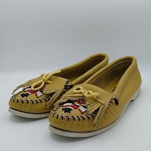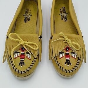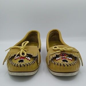 I have these. I’ve had them over 15 years. Wrong size or I would have snagged them. I’m 54 and have ALWAYS had Minnetonka Mocs. I was OBSESSED with Native Americans as a young child, still am except it’s a different respect now that at 54 I know what the White man did. Love these! My nieces are only 10(6 months apart not sisters). Or they’d have em. Beautiful mics. Comfy. Can walk forever in mine. Only there’s damn SNOW everywhere! Ick. Blessings!!