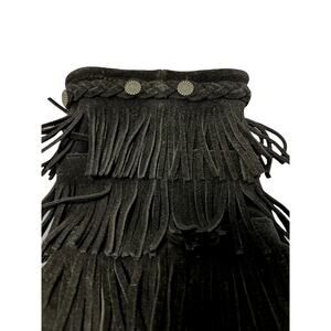 Minnetonka Triple Tiered Fringe Boots Girls Sz 4 Suede Western Moccasin Cowgirl