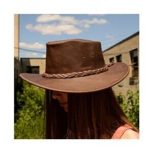 Minnetonka Unisex The Fold Up Hat / Size-Large / Color-Brown / Pre-Owned / Leather, Breathable / Measurement-Length 8” inch, A Cross 7” inch /