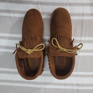 Minnetonka Venice Suede Leather Boho Fringe Bootie Hard SoleBrown Women’s 7