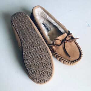 Minnetonka Women's 10 Suede Leather Lined Moccasin Slipper Tan Comfort