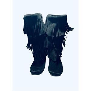 Minnetonka Women’s 3 Layer Black Fringe Boots
