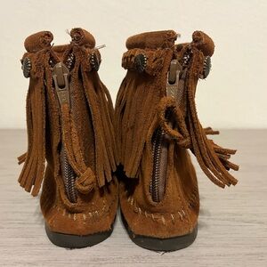 Minnetonka Women’s 3-Layer Fringe Moccasin Boots – Size 7