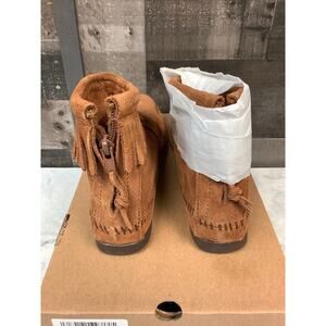 Minnetonka Women's 7.5 Tan Ankle Bootie Real Leather Fringe Southwestern LB14-6