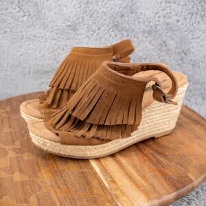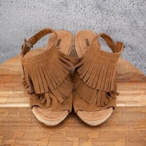 Minnetonka Womens Ashley Wedge Tassel Lesther Sandals Sz 6