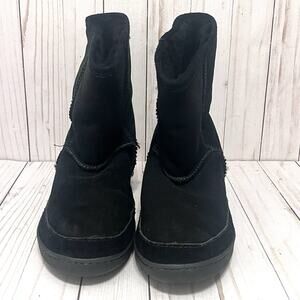 Minnetonka Women's Black Suede Sheepskin Wool Lined Short Boots Size 10