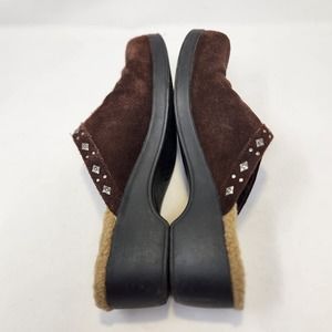Minnetonka Womens Brown Suede Slip On Mules Clogs Size 9 Studded Felt Lined