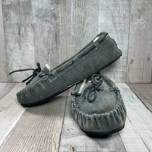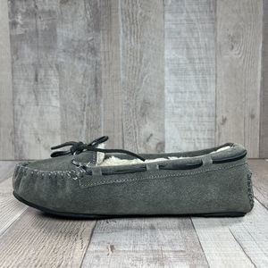 Minnetonka Women's Cally Slipper Moccasins Suede Lined Fur Slip On Gray Size 7