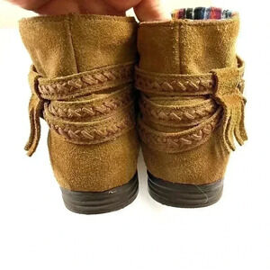 Minnetonka Women's Dixon Brown Suede Braided Buckle Moccasin Zip Booties Size 8