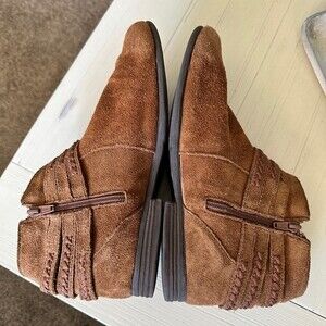 Minnetonka Women's Dixon Brown Suede Leather Boot Zip Ankle Bootie Boho Tan 10