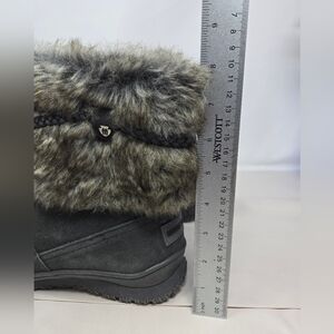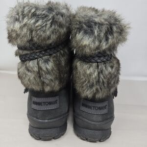 Minnetonka Womens Everett Boots Sz 7 Charcoal Suede Faux Fur Braided Suede Tie