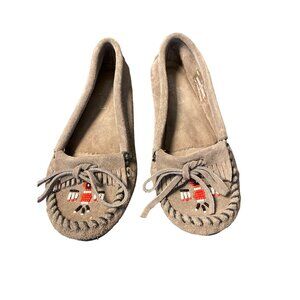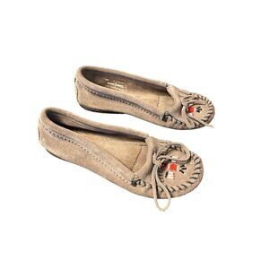 Minnetonka Women's Gray Suede Thunderbird Classic Moccasins 6 NWOT