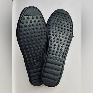 Minnetonka Women's Kilty Black Suede Moccasins Size 6.5 Hard Sole Cozy relaxing