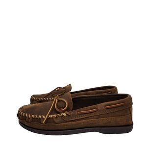 Minnetonka Women's Leather Double Bottom Hardsole Moccasins - 8