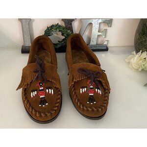 Minnetonka Women's Leather Moccasin W/ Thunderbird Beading Shoes Flats Sz 6 NWOB