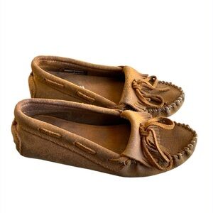 Experience comfort with Minnetonka's suede moccasins. Stylish and versatile for any casual occasion.