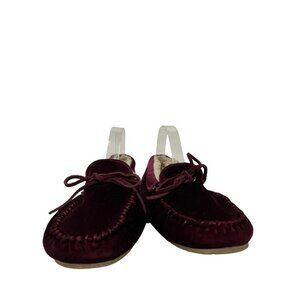 Minnetonka Women's Moccasin Burgundy Purple Velvet Slip On Faux Fur Size 11