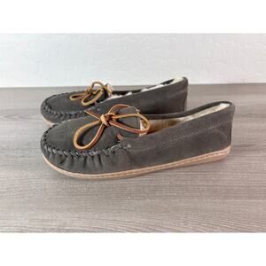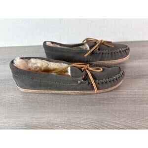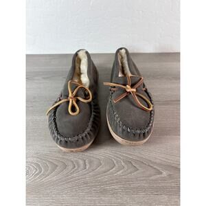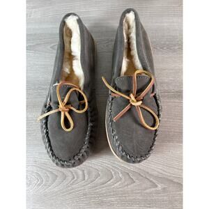 Minnetonka Women's Sheepskin Hardsole Moccasin Slippers Gray Women's Size 7 NWOB