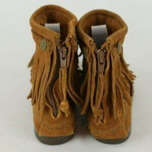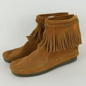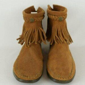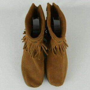 Minnetonka Women's Size 5.5 Brown Suede Double Fringe Zip Up Ankle Moccasins