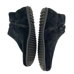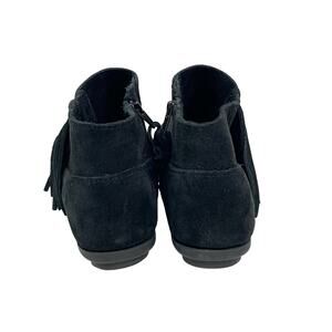 Minnetonka Women's Size 9.5 Black Suede Fringe Lacy Boho Ankle Bootie Moccasins
