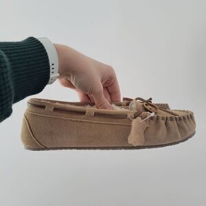 Minnetonka Women's Tan Moccasins Allie Junior Trapper Suede 8m NIB