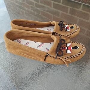 Minnetonka Women’s Thunderbird Animikii Softsole Moccasins 7 Suede, Beaded