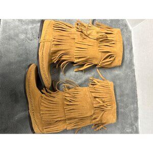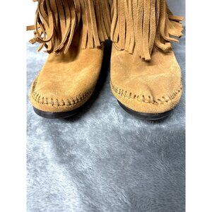 Minnetonka Womens Triple Fringe Suede moccasin Boots Size 7 Mid-calf NWO…