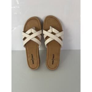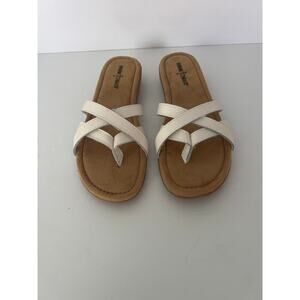 Minnetonka Women’s White Leather Sunny Thong Slippers Size 9. Crisscross top, Padded insole, comfortable 1.25” heels. Item # 0244