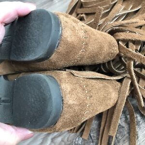 Minnetonka brown 3 layer suede fringe moccasins womens size 5 in great condition