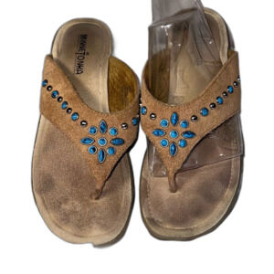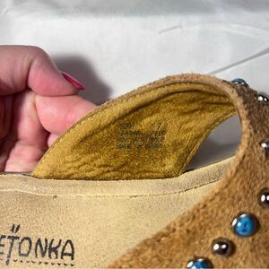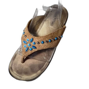 Minnetonka size 7 thong sandal turquoise color stones tan leather