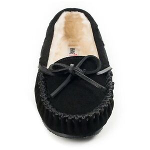Minnetonka slip on moccasins, sz 7! Black. Fits like a 6!