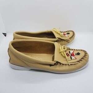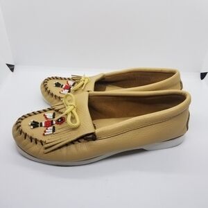 Minnetonka tan leather Thunderbird Boat Moc in Natural size 7