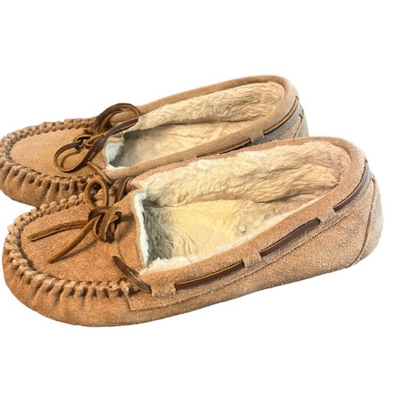 Minnetonka women’s suede fur lined Cally Cinnamon Moccasins size 7M