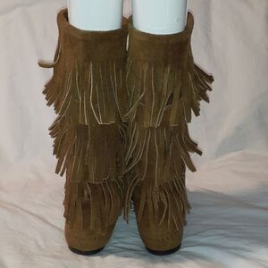 Minnetonka 3 Levels of Fringe Tall Suede Boots 8