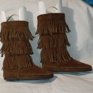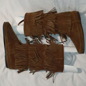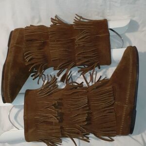 Minnetonka 3 Levels of Fringe Tall Suede Boots 8