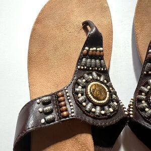 Brown beaded leather sandals by Minnetonka! Size 10. Some leather peeling on heel, but still lots of life left!