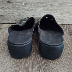 Minnetonka Black Embroidered Cut-Out Slip-On Clogs Size 8.5