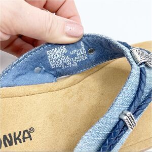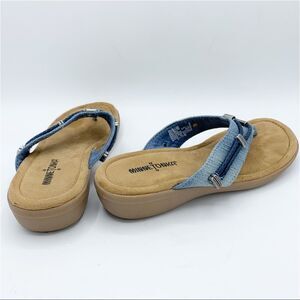 Minnetonka Chambray Silverthrone Wedge Thong Sandals Sz 9