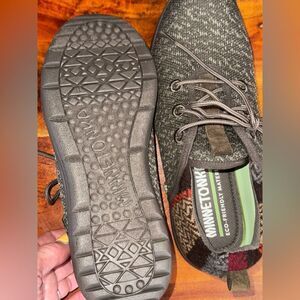 Minnetonka Eco Anew Charcoal Lace-Up Sneakers NWOT SZ 9